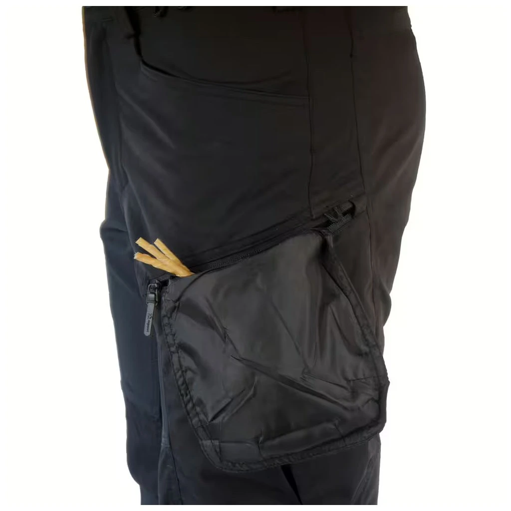 - Objemné stehenní kapsy: Velké měchové kapsy pojmou značné množství výcvikových pomůcek.